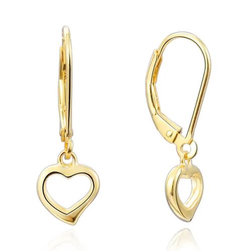 STŘÍBRNÉ NÁUŠNICE SRDÍČKO GOLD Visací náušnice o délce 24 mm. Povrchová úprava: pozlacené. Bez zirkonů. Náušnice jsou vyrobené ze stříbra 925/1000 a jsou označené puncem ryzosti.