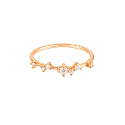 STŘÍBRNÝ PRSTEN HVĚZDNÉ NEBE ROSE Zirkony jsou rozmístěné tak, že připomínají hvězdnou oblohu. Prsten je pozlacený růžovým zlatem. Všechny zirkony jsou čiré a vsazené. Šířka obroučky je 1,2 mm. Maximální přední šířka se zirkony je 3,7 mm. Prsten je vyrobený ze stříbra 925/1000 a je označený puncem ryzosti.